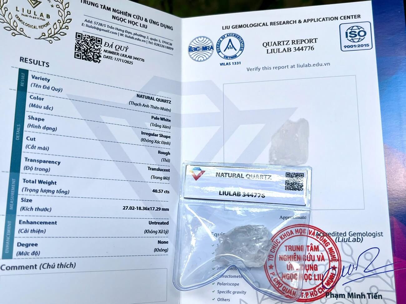 Cách chắc chắn nhất để đảm bảo chất lượng là yêu cầu người bán cung cấp giấy kiểm định từ các trung tâm uy tín như PNJ, SJC, VGC… Giấy kiểm định sẽ ghi rõ các thông tin quan trọng: tên đá (Natural Quartz), nguồn gốc (Tự nhiên), màu sắc và các chỉ số vật lý khác. Đây chính là bằng chứng xác thực nhất cho giá trị sản phẩm bạn mua.