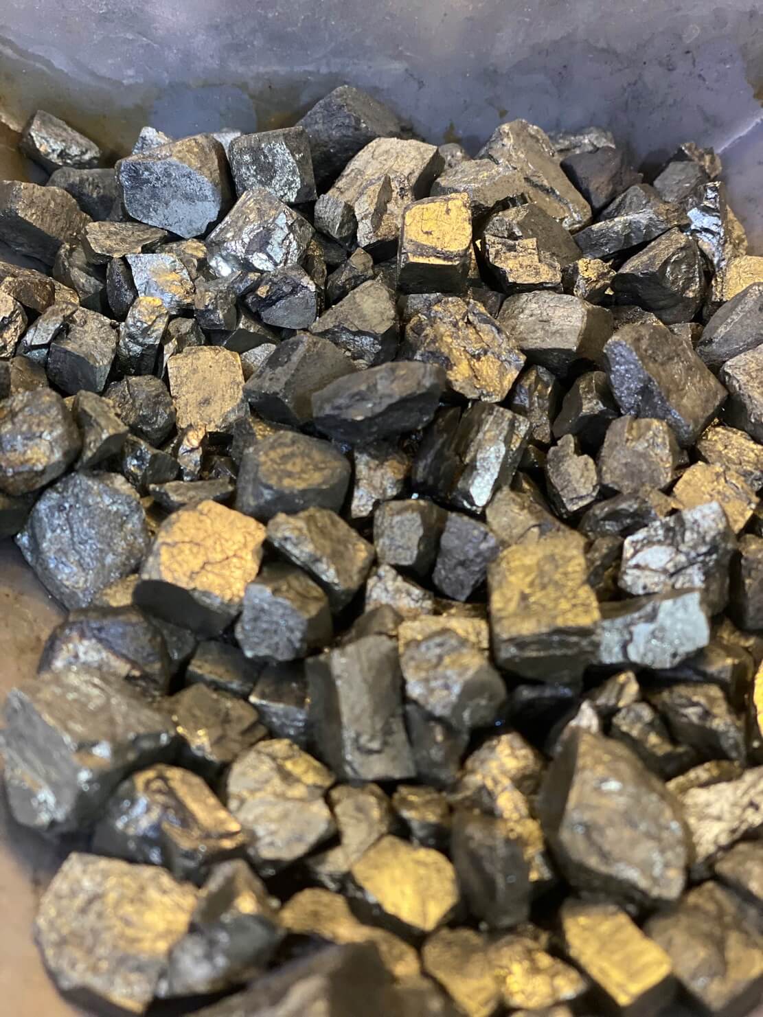 - Phân biệt với Chalcopyrite: Chalcopyrite cũng là một loại quặng có biệt danh “vàng găm” nhưng có thành phần hóa học khác (đồng sắt sulfide). Chalcopyrite thường có màu vàng đồng đậm hơn, mềm hơn Pyrite và đặc biệt là thường có ánh ngũ sắc (màu tím, xanh lam) trên bề mặt khi bị oxy hóa. Pyrite hiếm khi có ánh ngũ sắc này.