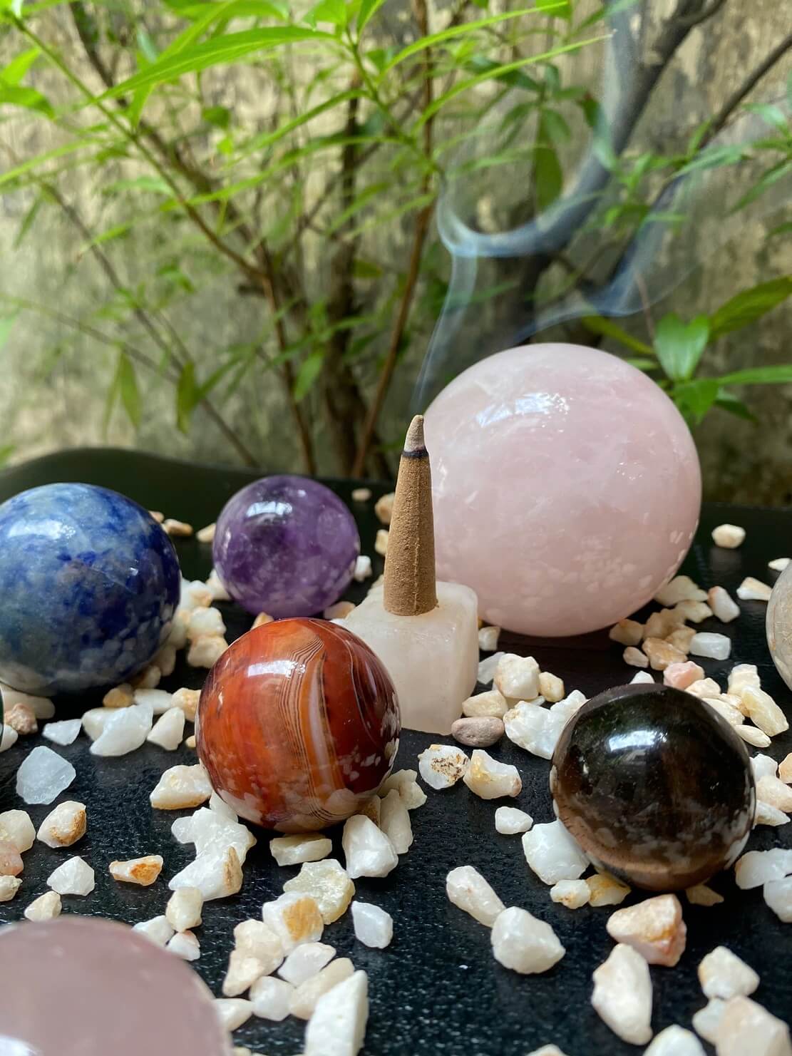 - Xông khói bằng trầm hương, xô thơm (sage), hoặc gỗ trắc xanh (palo santo): Hơ đá qua khói của các loại thảo mộc này cũng là một cách thanh tẩy hiệu quả.