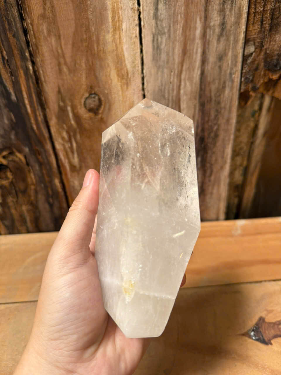 Tinh thể thạch anh trắng trong đánh bóng có Fantom là mẫu thạch anh tự nhiên được xử lý bề mặt mịn, trong suốt, giúp làm nổi bật các lớp Fantom hình thành tự nhiên bên trong tinh thể. Đây là đặc điểm hiếm gặp, tạo chiều sâu thị giác và giá trị sưu tầm cho sản phẩm.